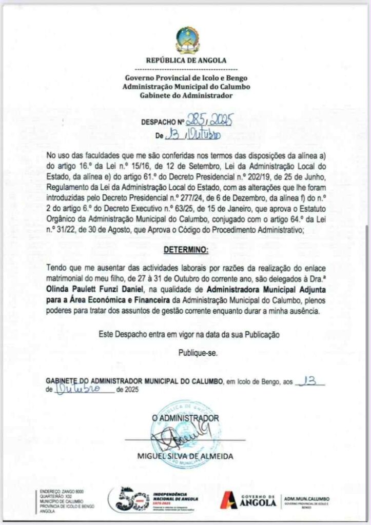 A instabilidade é confirmada por dados internos: “Calumbo apresenta-se como o município com mais exonerações e novas nomeações… um registo justificado pela arrogância e prepotência do então administrador”, aponta a denúncia. A situação levou até familiares e contemporâneos que faziam parte da sua equipa a abandonarem os respetivos cargos.