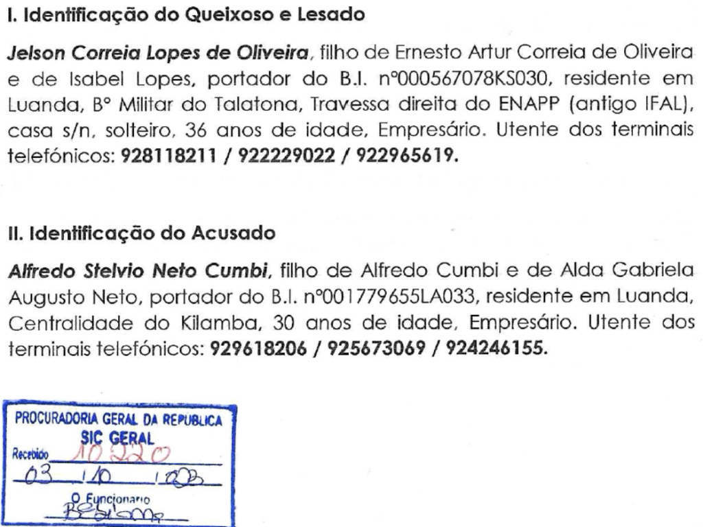 Num documento apresentado às autoridades, o queixoso relata ter esgotado todas as tentativas de resolução amigável do conflito, sem sucesso. Na queixa-crime formalizada junto ao Departamento dos Crimes e Fraudes Financeiros do Comando Municipal de Talatona, sob o processo n.º 4051/23, em tramitação desde Abril de 2023, o denunciante escreve: